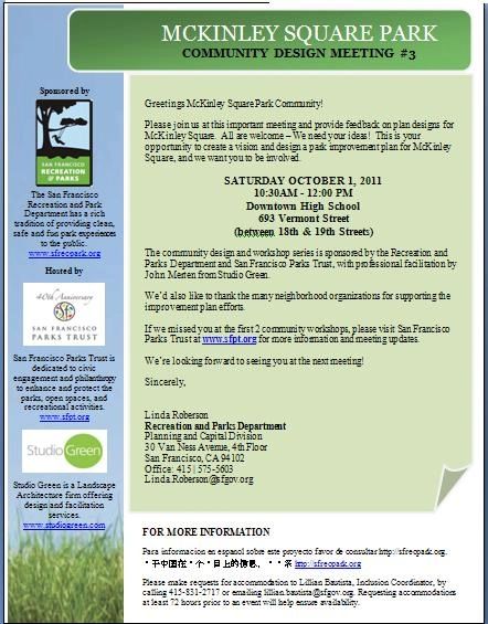 If we missed you at the first 2 community workshops, please visit San Francisco Parks Trust at www.sfpt.org for more information and meeting updates.