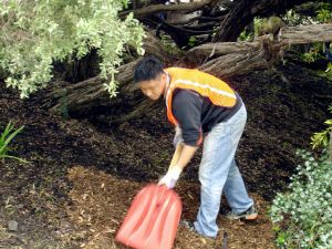 The match was made! E-mails back and forth – time schedules were discussed, more e-mails. The Arc proposed 20+ volunteers with 1 instructor per 5 clients and RPD agreed to give it a try. Steve Cismowski planned an entire project for them which would happen in the lower western paths (near 20th St. and San Bruno Ave.) where the off-leash dog areas are located.